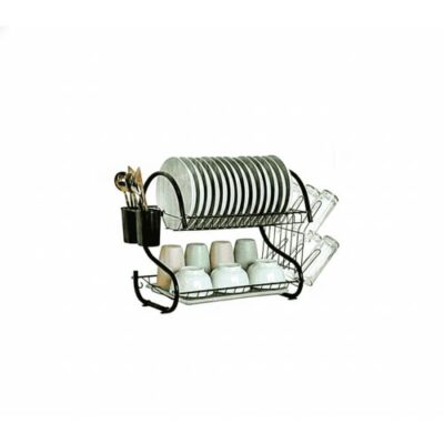 2-Tier Dish Rack; Top Tier places up to 13 pcs plates; down tier places up to 22 pcs bowls, sides are designed for cutting board and utensil