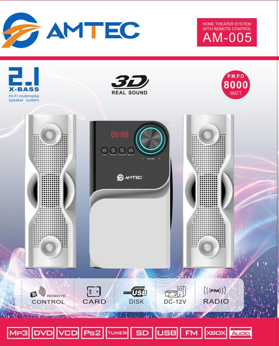 Listen to your music collection in style with this AMTEC AM-005 2.1 HI-FI Multimedia Speaker System. This sound system is designed for the extreme entertainment lovers to enjoy their amazing music and movies with sound clarity never heard before, you will love your movie soundtrack playing on this Multimedia Speaker System.