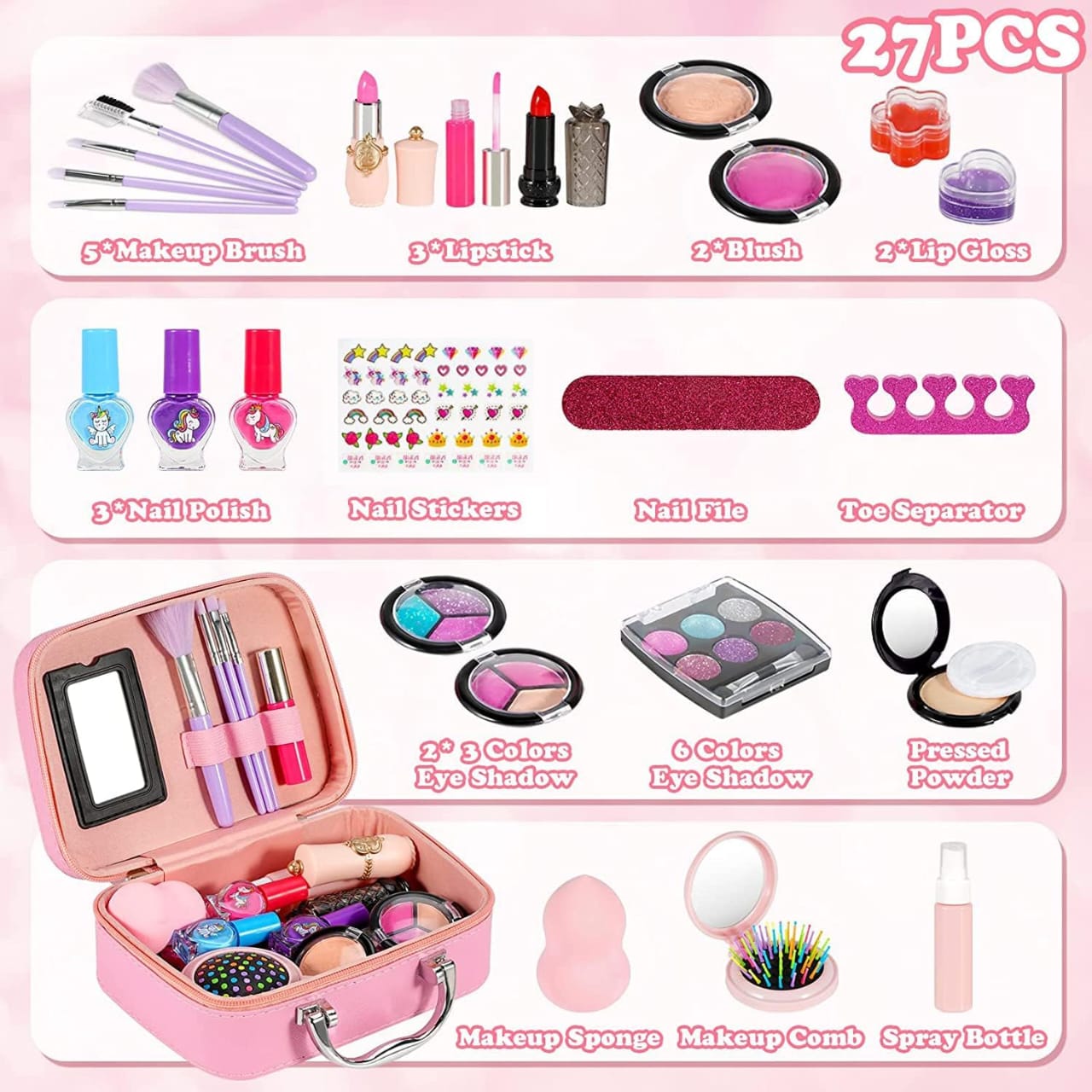 • Girls Makeup Kit Kids Make Up Set Real Cosmetics Play Set with Travel Cosmetic Case Washable Party Game Make Up Toys Chrismas Birthday Gift for Little Girls