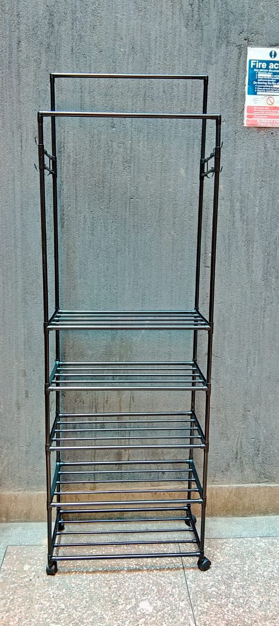 - 【Large storage space】Our clothing rack is with 5 tier storage shelf and 8pcs removable hooks.It can keep all your shoes and boxes in order and save much space for your home .