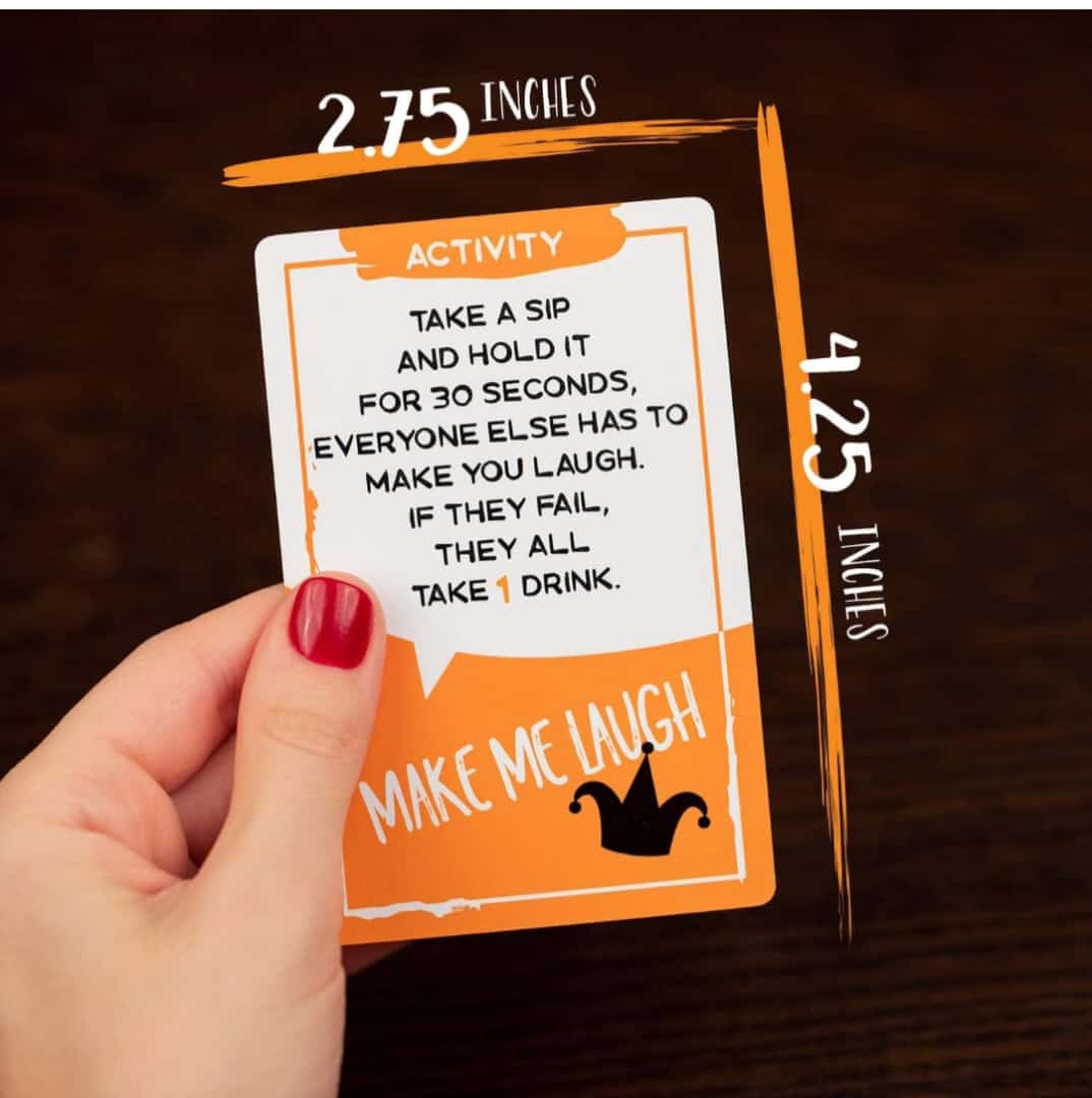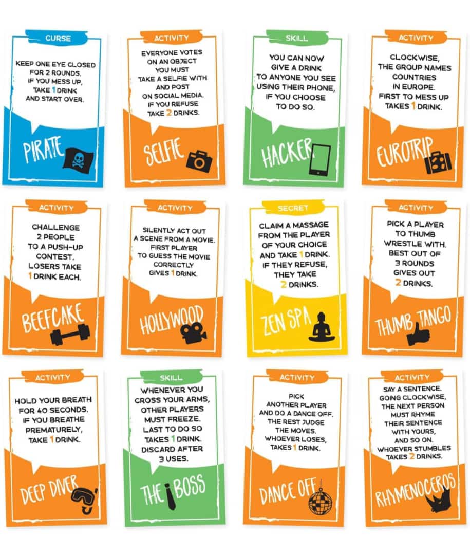 HOW TO WIN: Designed as a drinking game with fun activities this game is best played with … drinks. So staying totally sober would be difficult. Whoever takes the least amount of drinks is declared the winner. Alternatively, drinks can be substituted with points for a totally sober approach.