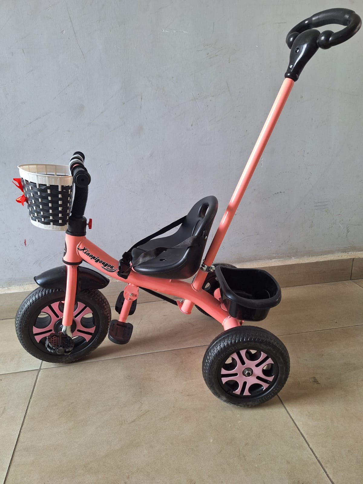 For younger riders, the adjustable parent push handle allows you to maintain full control, guiding them safely as they learn to balance and steer. The ergonomic seat features a secure safety harness, ensuring your little one is snugly seated during strolls. A convenient front basket and a rear storage bin provide ample space for snacks, toys, or other essentials, making it ideal for trips to the park or neighborhood walks.